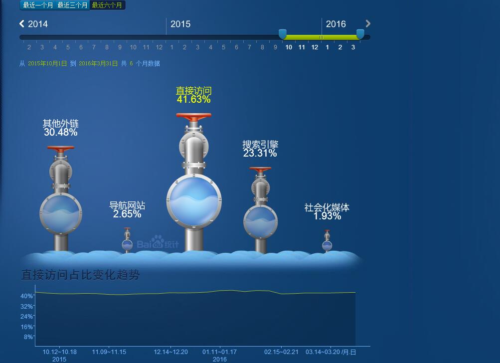 網(wǎng)民的搜索流量入口的數(shù)據(jù)在最近6個(gè)月的展現(xiàn)中不同渠道的占有率,可以結(jié)合自身情況就附著力促進(jìn)劑做針對(duì)性的搜索布局。